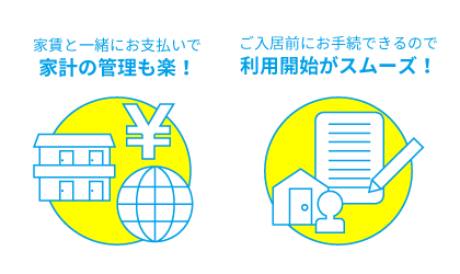 これまで別々だった家賃とインターネット利用料金のお支払いを一つにまとめられます。また、お申し込みはご入居前にお手続できます。